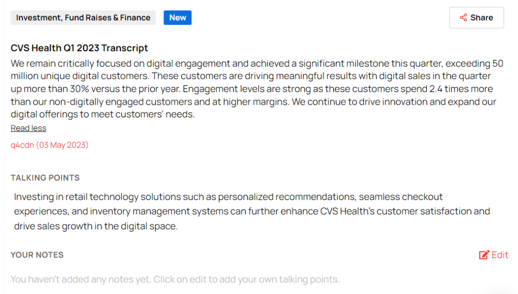 CVS reported a 22% increase in digital engagement, reflecting the growing trend of consumers using online platforms for their healthcare needs. The company’s efforts in enhancing its digital capabilities, such as the expansion of its virtual care platform, has contributed to this growth. This achievement will be beneficial for the technology and marketing industries, as CVS continues to invest in digital innovation.